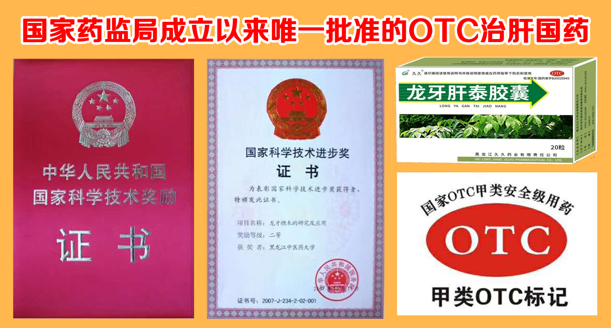 “龙牙肝泰胶囊”是通过国家药监局自2003年加强监督管理后,唯一批准的OTC治肝药品,国药准字B20020945,主要是保肝降酶,有效治疗各型肝炎、酒精肝、脂肪肝、肝纤维化、肝硬化、肝功能损伤。无需在医生指导下用药,患者可根据说明书自行服用,这就更加说明龙牙肝泰胶囊无任何毒副作用,疗效可靠确切,得到国家行业主管部门的认定。