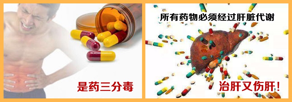 众所周知,“是药三分毒”,而所有药物都是通过肝脏来代谢的,所以很多其它类疾病治疗药物的说明书上都为注明“肝功能不全者慎用”,当然,治疗肝病的药物,不管是注射的还是口服的同样也是通过肝脏代谢,“在治肝的同时又会伤肝”!